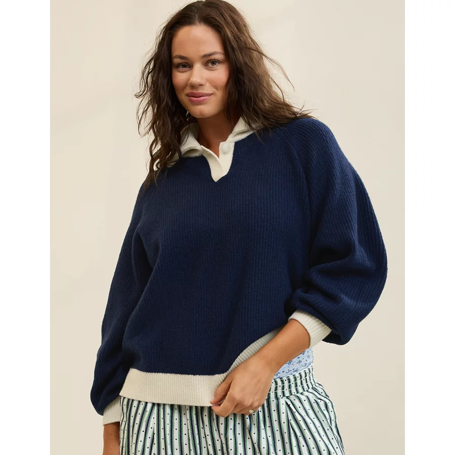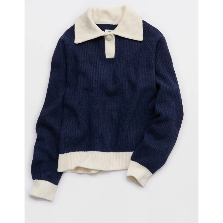Aerie Classic Quarter Button Sweater – Navy