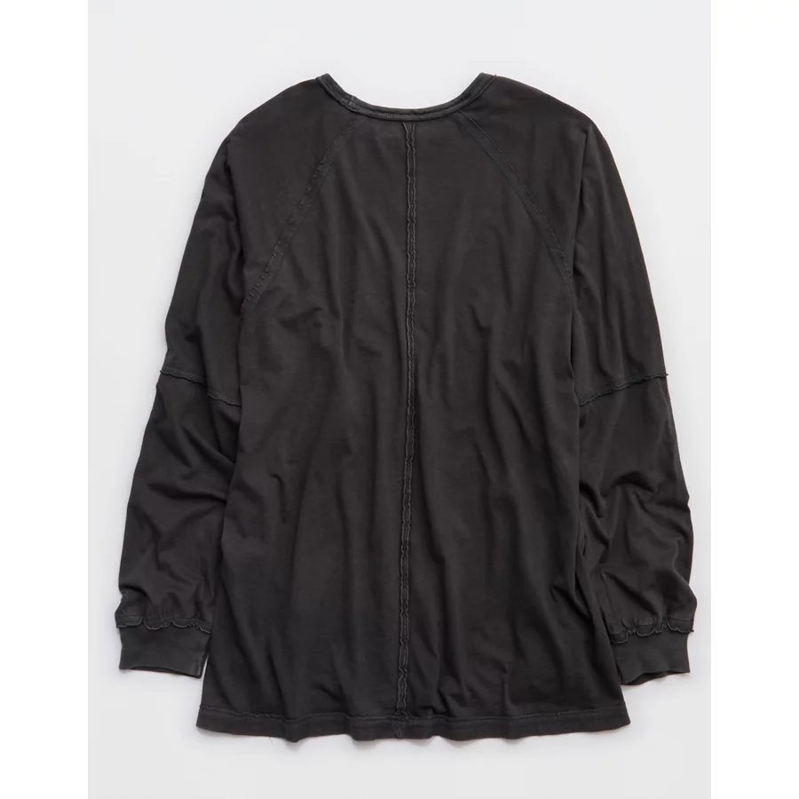 Aerie Cozy Long Sleeve Oversized Boyfriend T-Shirt – Smoked Gray
