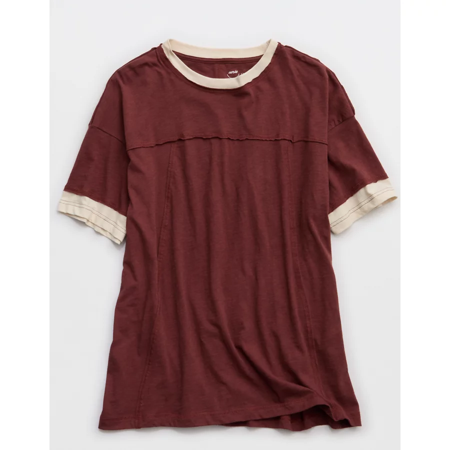 Aerie Crew Oversized Boyfriend T-Shirt – Dark Rust