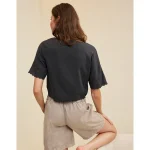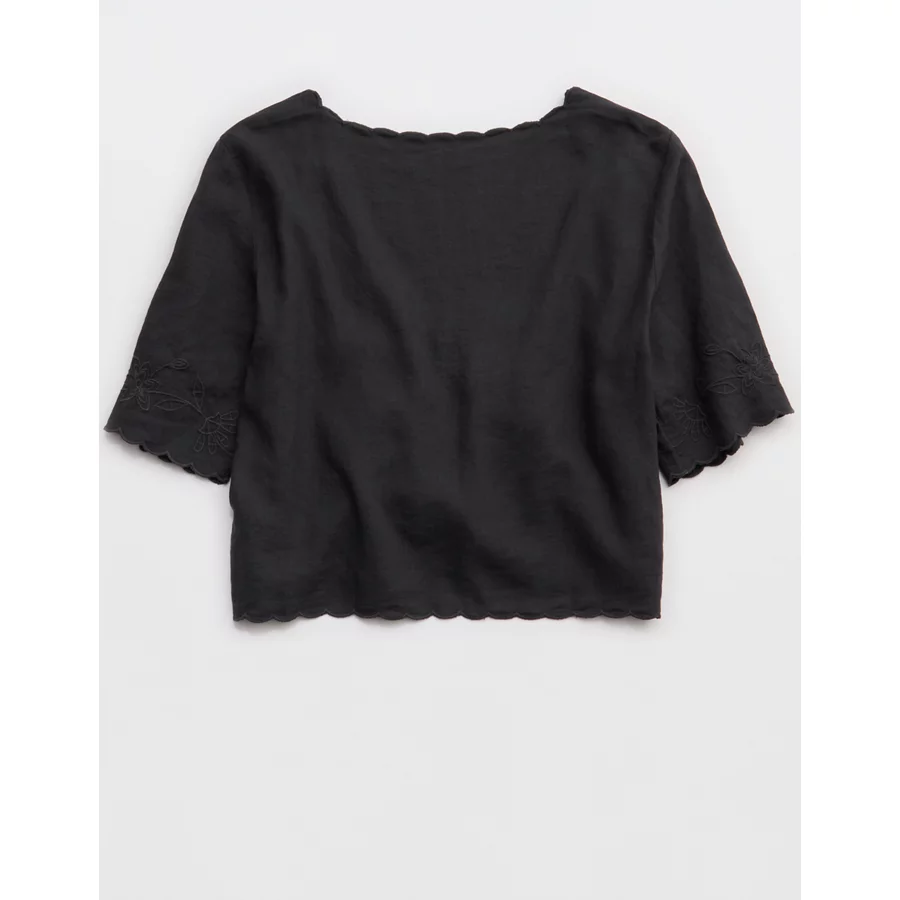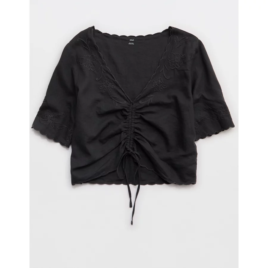 Aerie Cropped Cinch Front Top – Smoked Gray