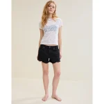 Lightweight, airy cotton poplin in stripesElastic paperbag waistFunctional button front with drawstringLined with boxer shorts 100% CottonMachine washImported Mini length