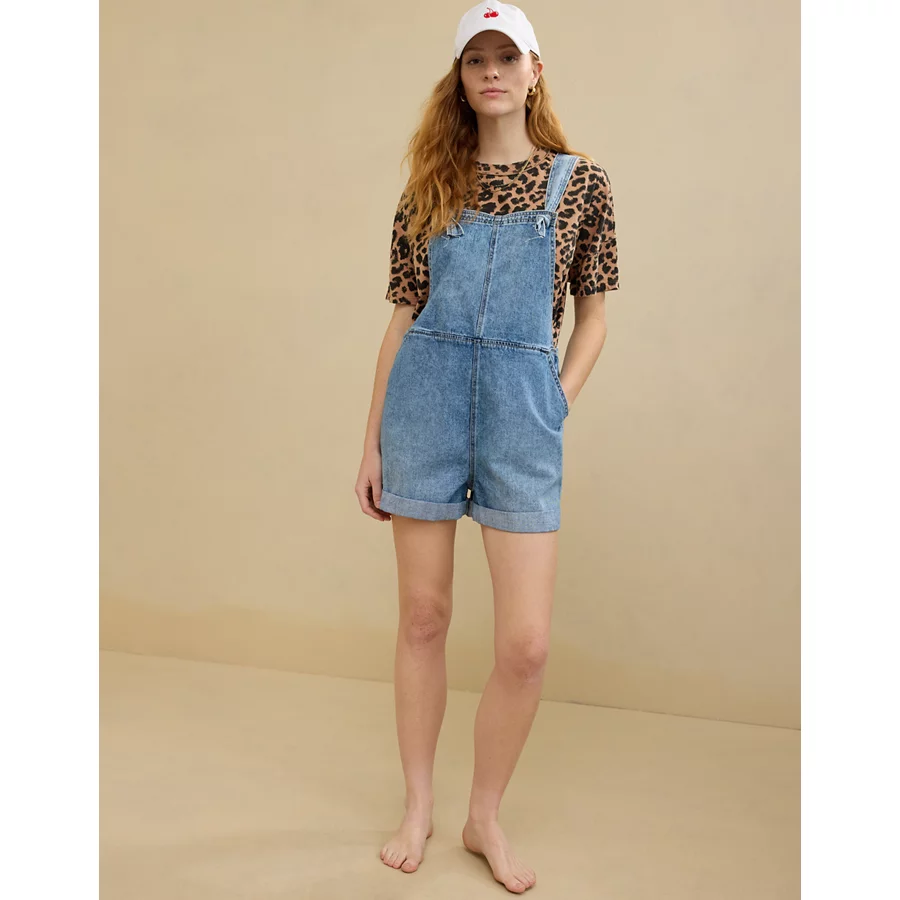 Aerie Denim Shortall – Medium Indigo Wash