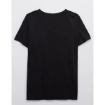 Aerie Distressed Basic V-Neck Boyfriend T-Shirt – True Black