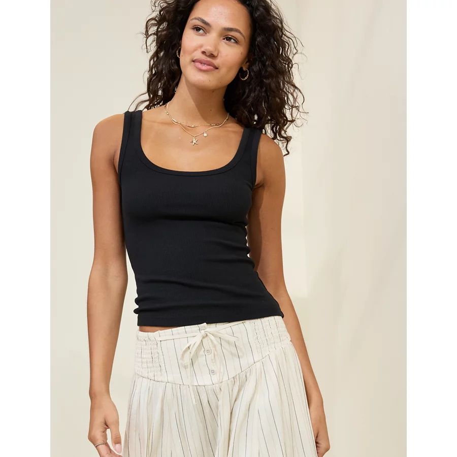 Aerie Double Scoop Neck Tank Top - Light Heather Gray