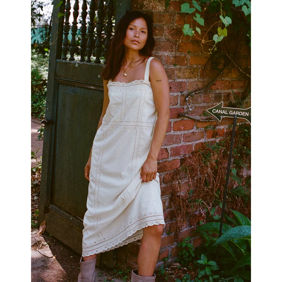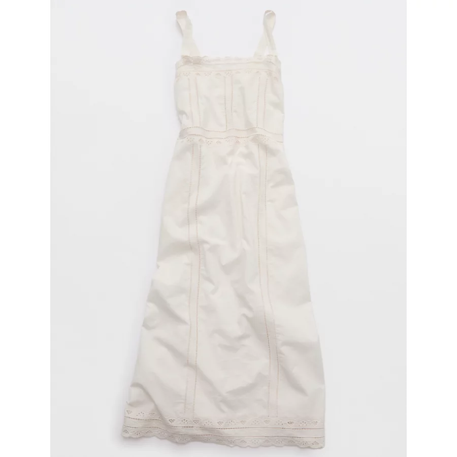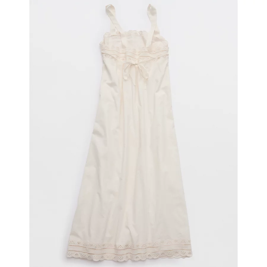 Aerie Embroidered Midaxi Dress – Natural