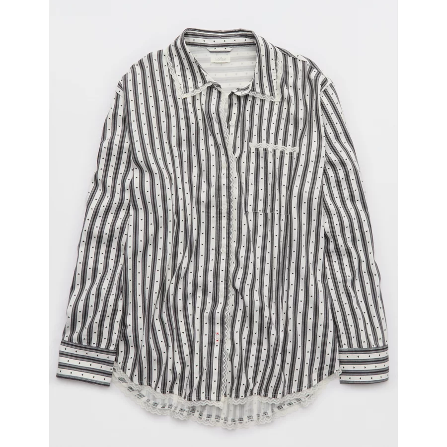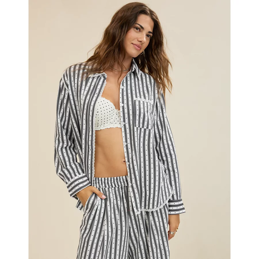 Aerie Bambi Real Soft® Piping Pajama Shirt – Smoked Gray