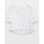 Aerie Flowy Cropped Notch Neck T-Shirt – White