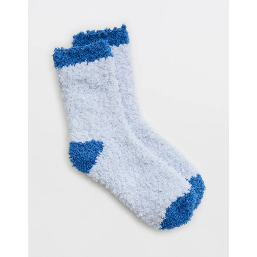 Aerie Fuzzy Crew Socks – Eyelet Blue