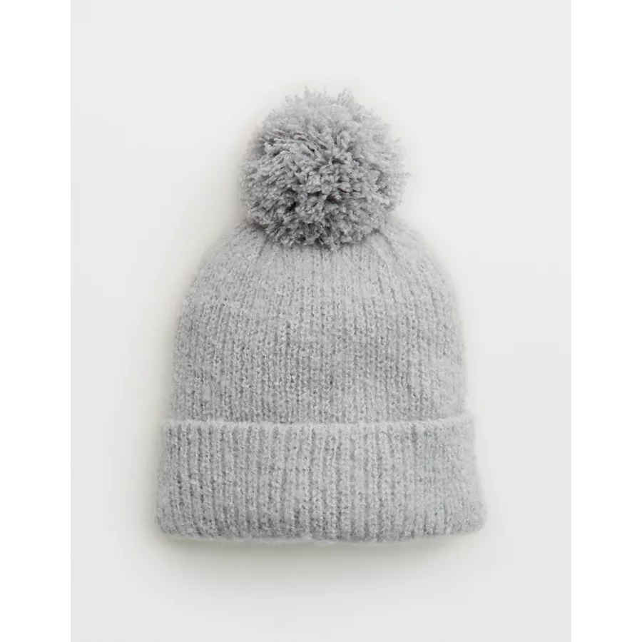 Aerie Fuzzy Pom Beanie – Medium Heather Gray