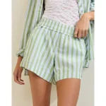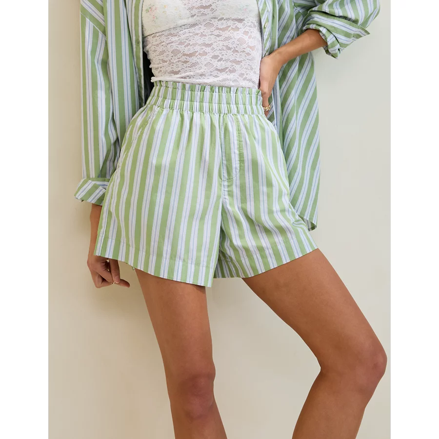 Lightweight, airy cotton poplin in stripesElastic paperbag waistFunctional button front with drawstringLined with boxer shorts 100% CottonMachine washImported Mini length