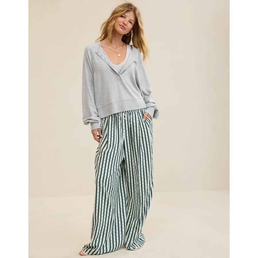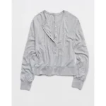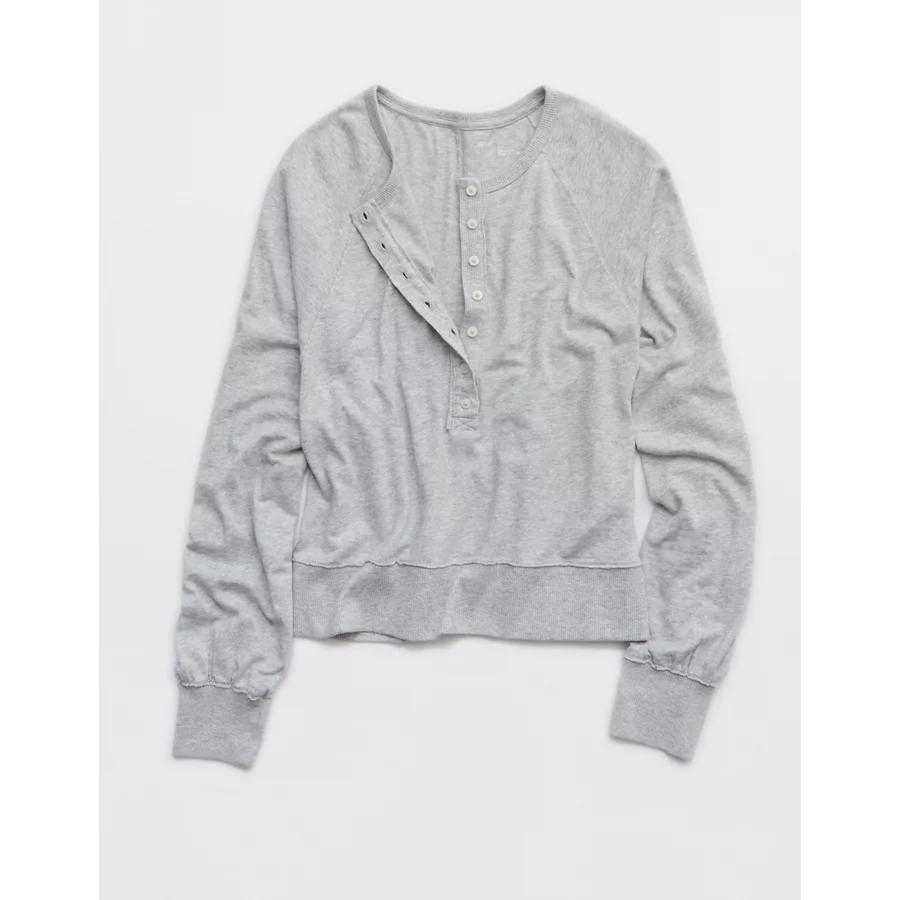 Aerie Happy Snit Henley T-Shirt – Medium Heather Gray