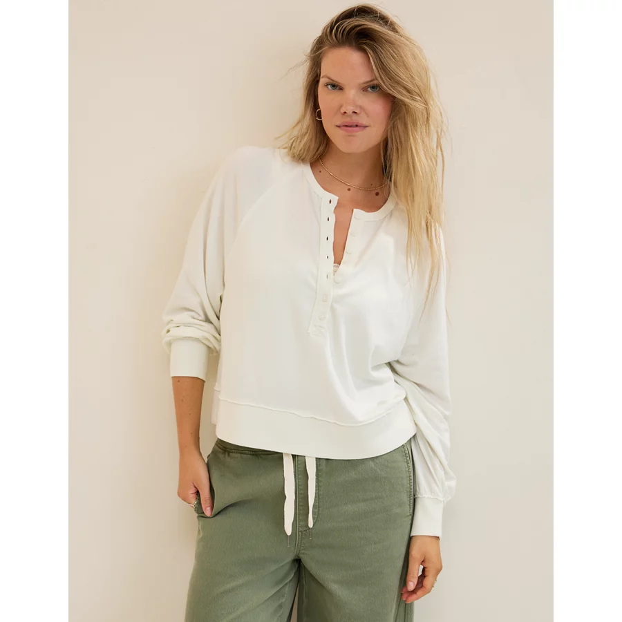 Aerie Happy Snit Henley T-Shirt – Soft Muslin