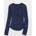 Aerie Henley Essential Layering T-Shirt - Bright Red
