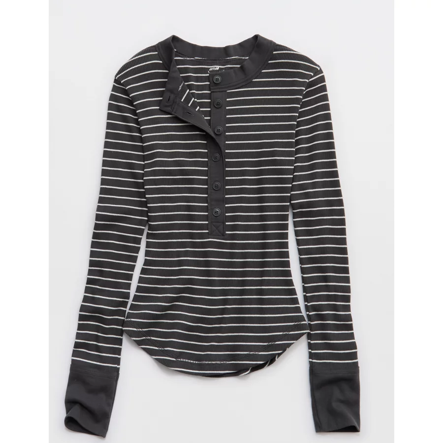 Aerie Henley Essential Layering T-Shirt – Smoked Gray