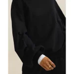 Real Good Everyday yarnRolled necklineRibbed trim on cuffs and hemPointelle deets and split cuffs on the sleevesStripedAccessibility deets: over-the-head access