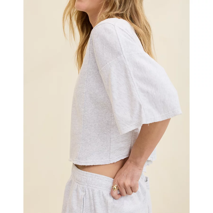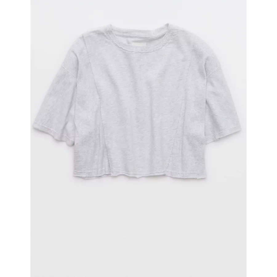 Aerie Let Loose Fleece T-Shirt – Light Heather Gray