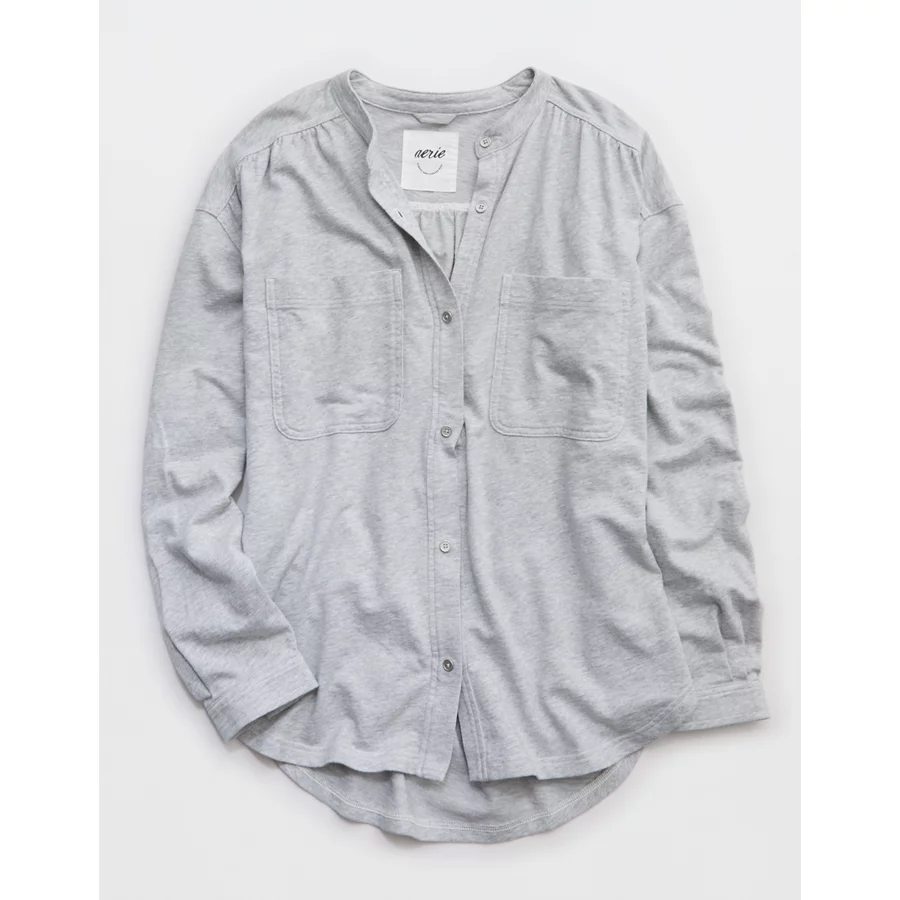 Aerie MagnaReady Adaptive Roll With It Fleece Shirt – Medium Heather Gray
