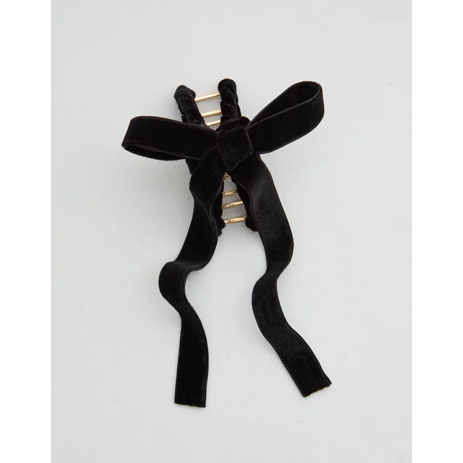 Aerie Medium Velvet Bow Claw Clip – True Black