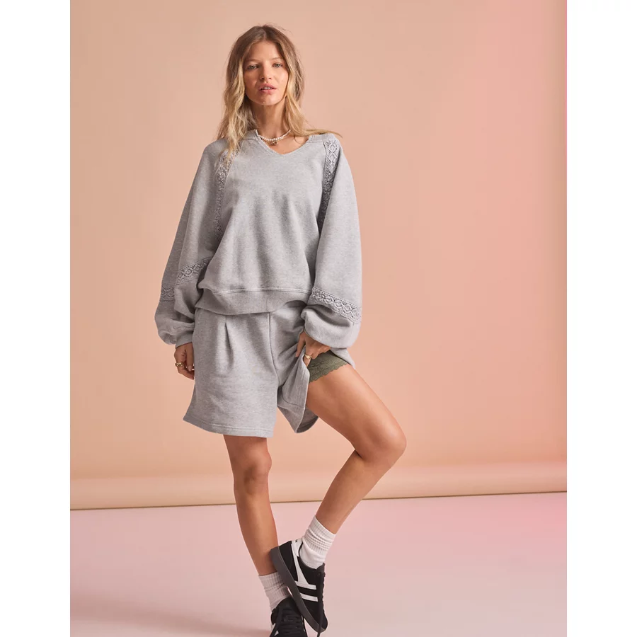 Aerie New Heights Trouser Fleece Short – Medium Heather Gray