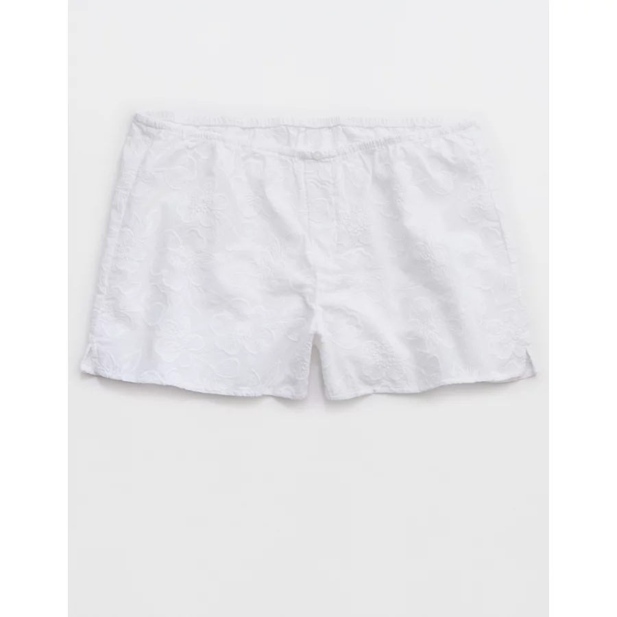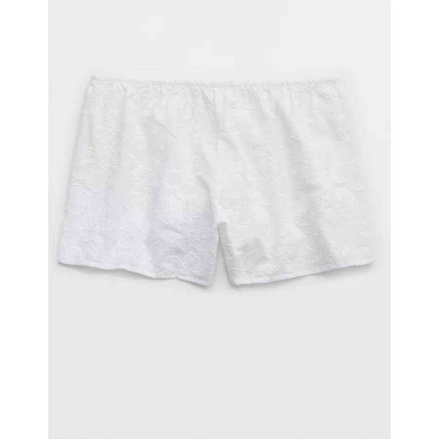 Aerie Off-Duty Embroidered Cotton Boxer – White