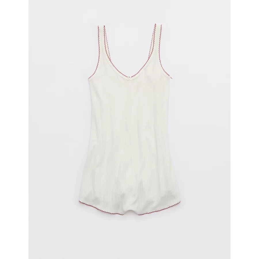 Aerie Off-Duty Pointelle Romper – Soft Muslin