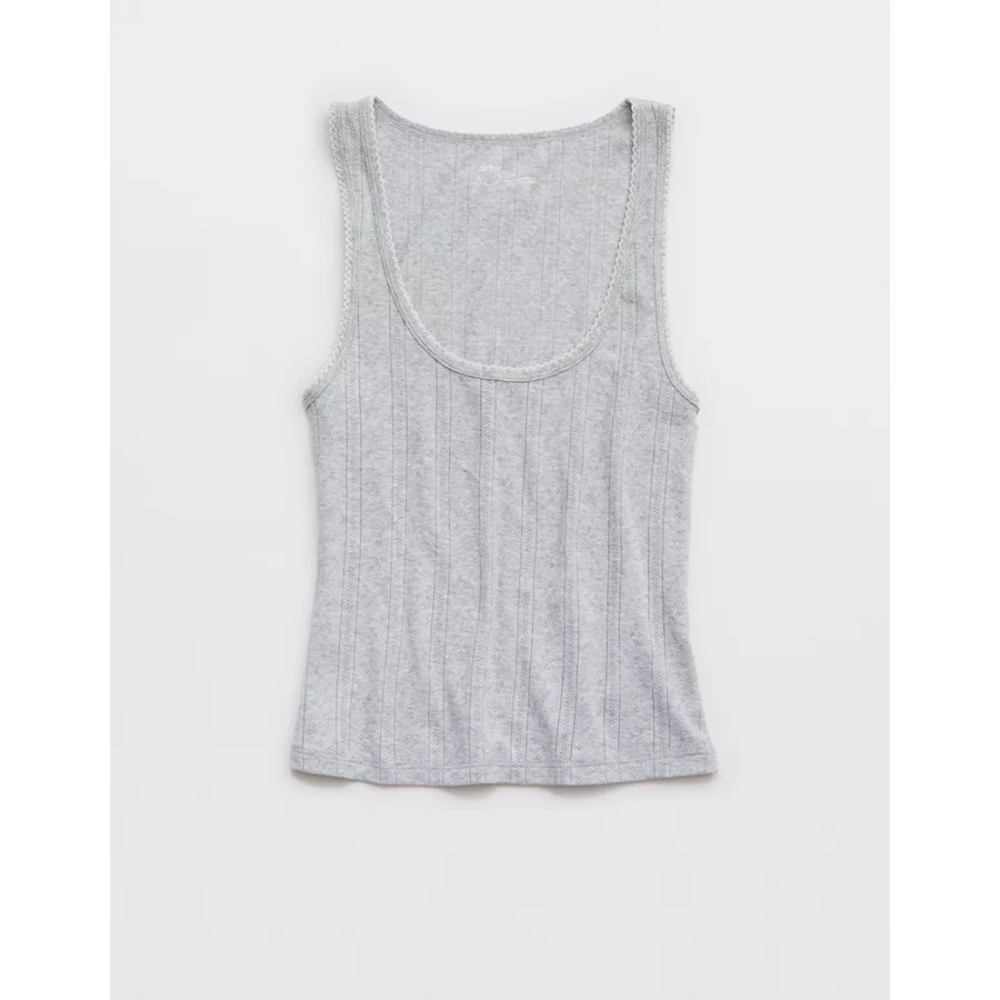 Aerie Off-Duty Pointelle Tank Top – Medium Heather Gray