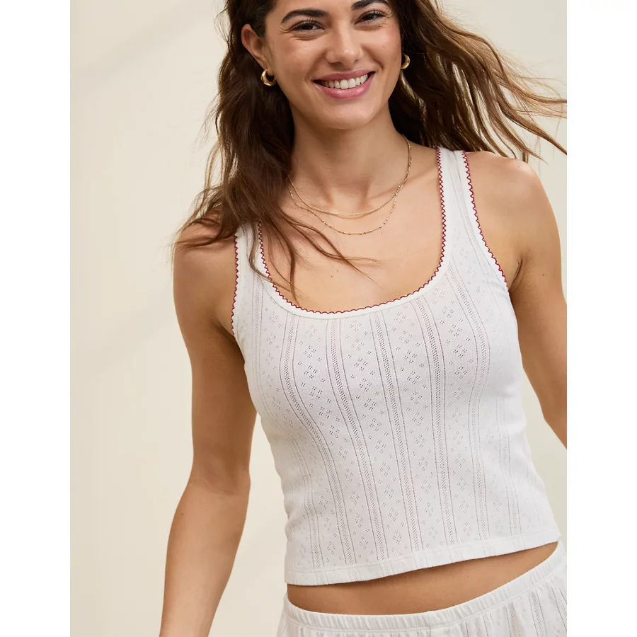 Aerie Off-Duty Pointelle Tank Top – Soft Muslin