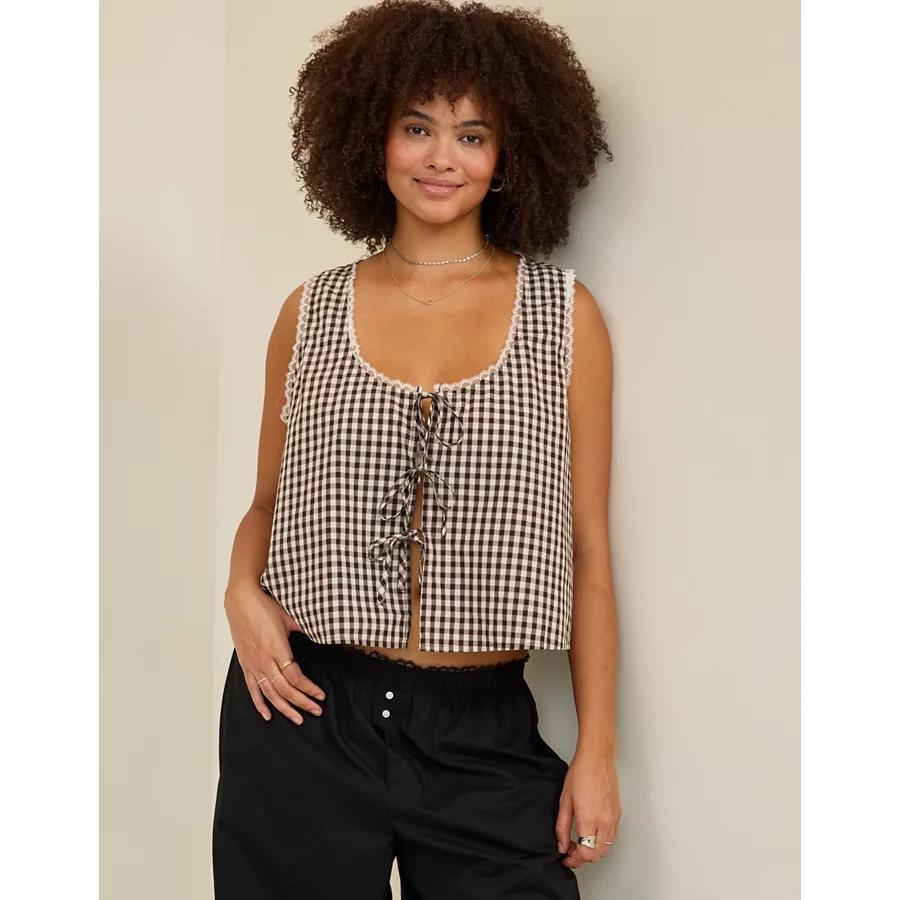 Aerie Off-Duty Poplin Tie Front Tank Top - Koko Brown