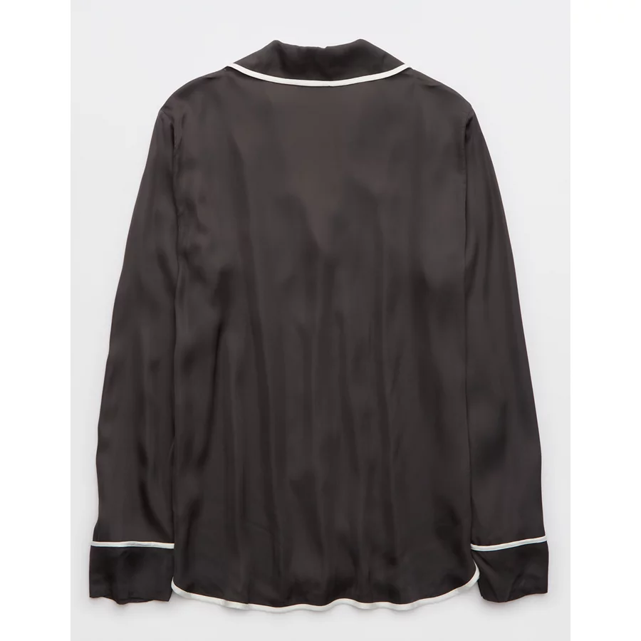 Aerie Off-Duty Satin Piping Shirt – Smoked Gray