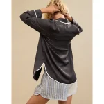 Aerie Bambi Real Soft® Piping Pajama Shirt – Smoked Gray