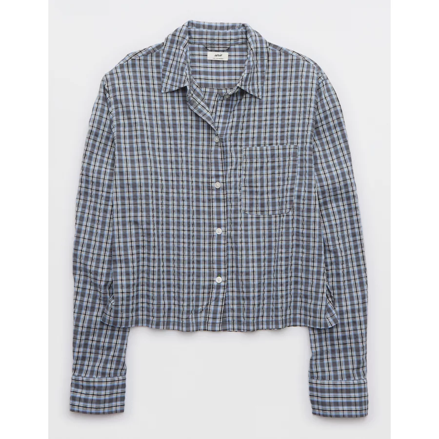 Aerie Off-Duty Seersucker Pajama Shirt – Shell Gray