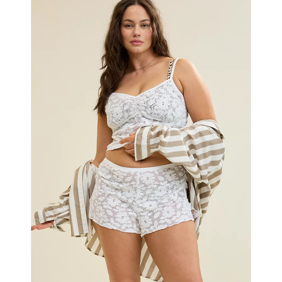 Lightweight gauze fabric with interior lining on top half Smocked waistCenter front slitFunctional buttons on the frontFemme ruffle and crochet
