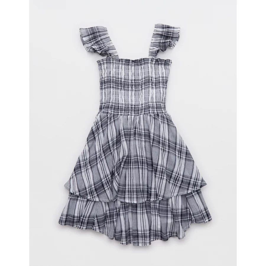 Aerie Plaid Handkerchief Mini Dress – Navy