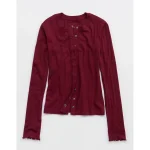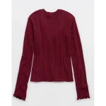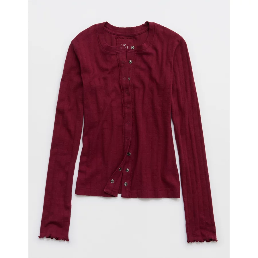 Aerie Pointelle Cardi T-Shirt – Deep Cherry