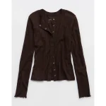 Aerie Pointelle Cardi T-Shirt – Deep Earth