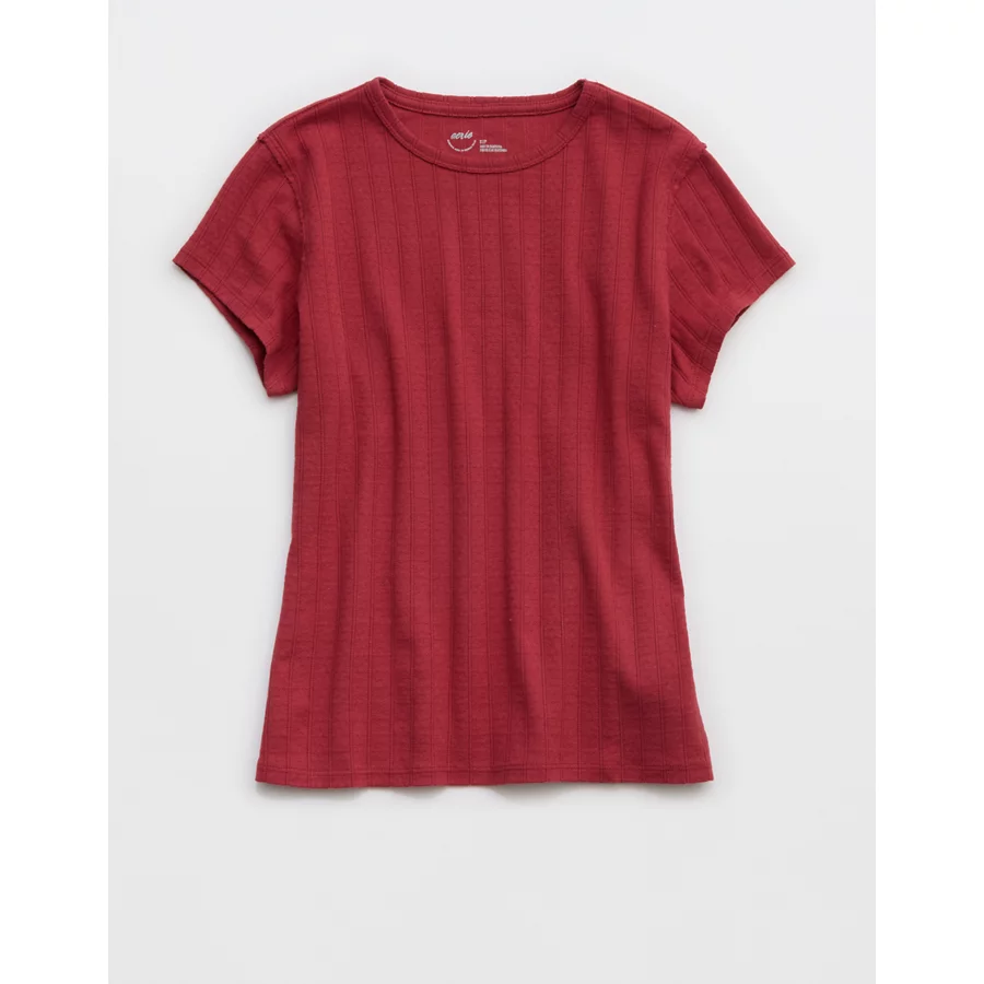 Aerie Pointelle Vintage T-Shirt – Summer Burgundy