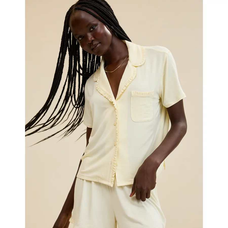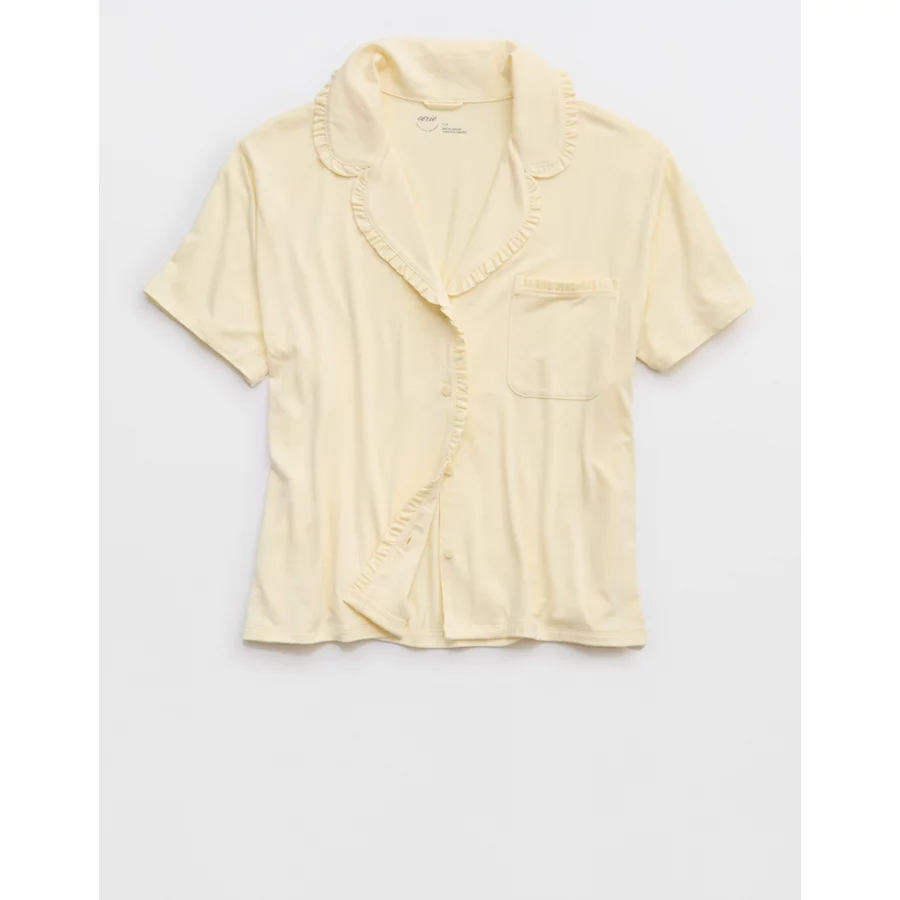 Aerie Real Soft® Ruffle Pajama Shirt – Natural Yellow