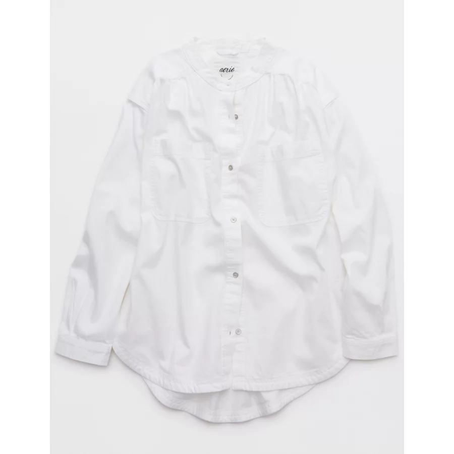 Aerie Roll With It Lightweight Fleece Shirt - Heather Frost