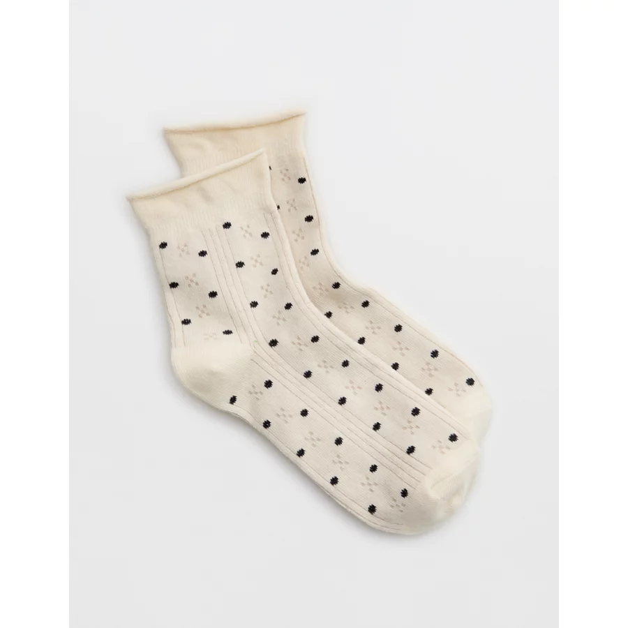 Aerie Rolled Edge Pointelle Quarter Socks – Soft Muslin