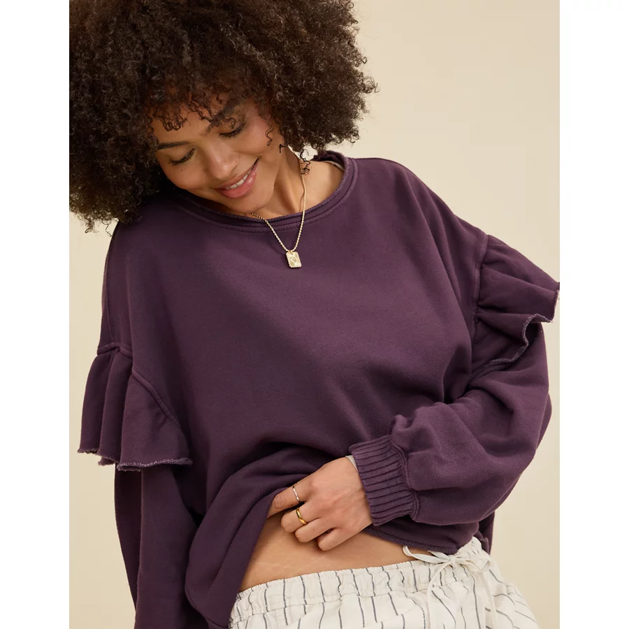 Aerie Ruffle Sleeve Sweatshirt – Cool Berry