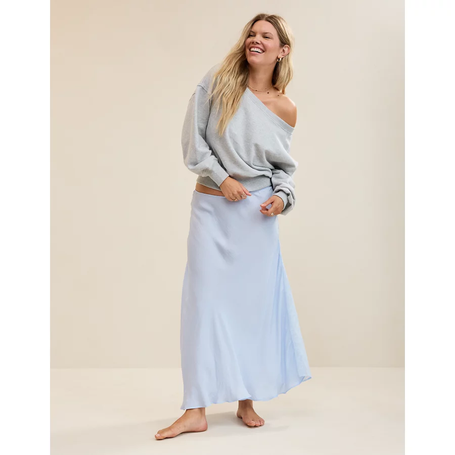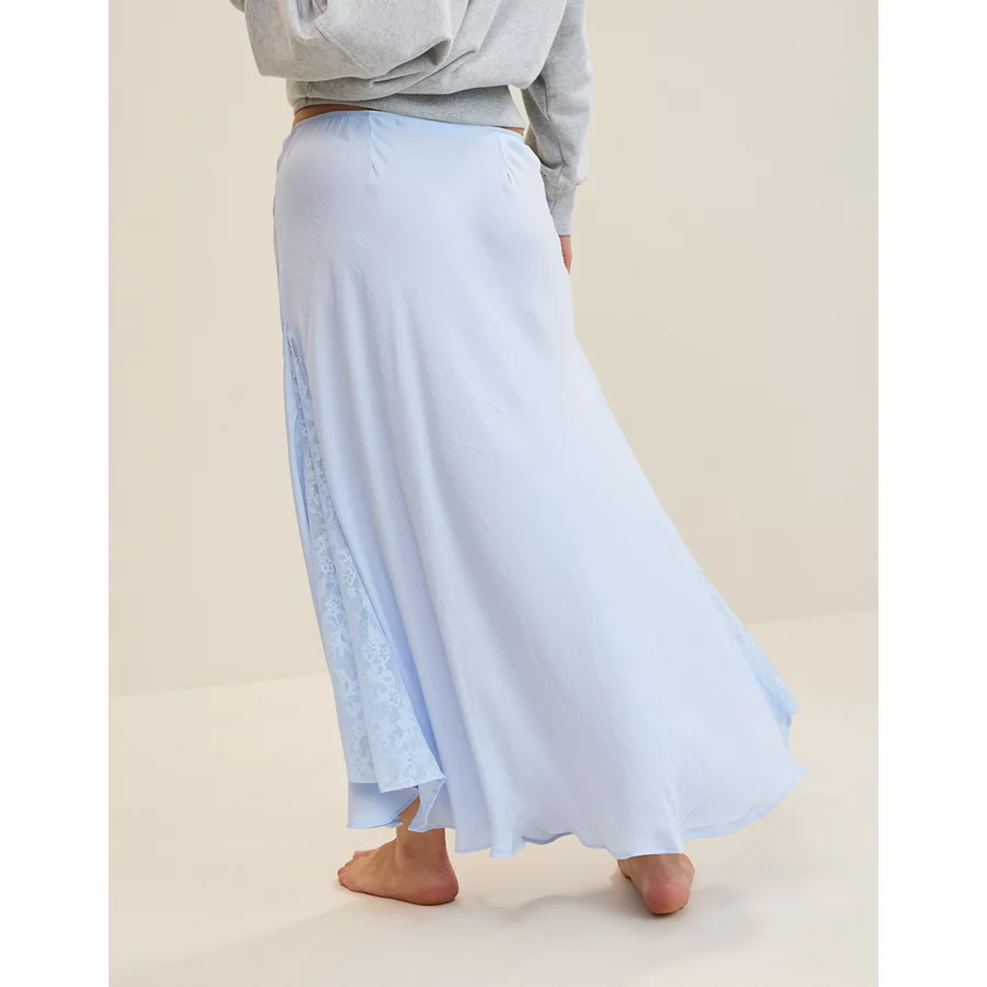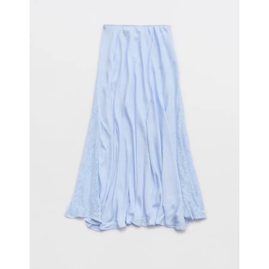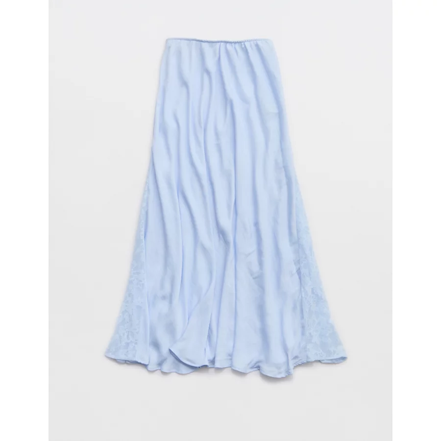 Aerie Satin Maxi Skirt – Eyelet Blue