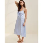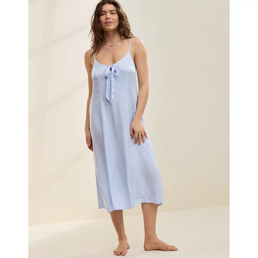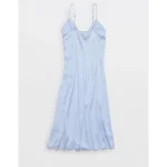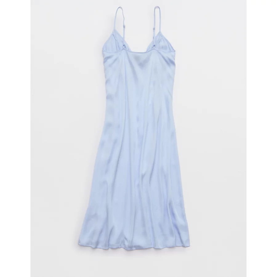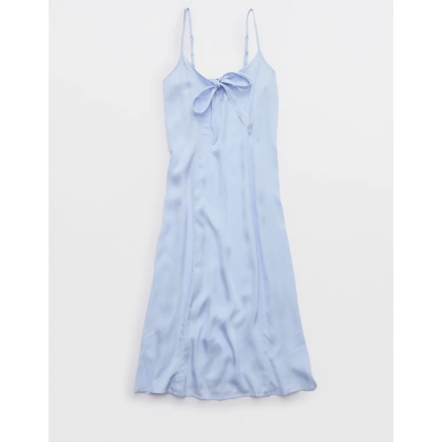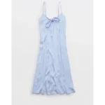 Aerie Satin Midi Dress – Eyelet Blue