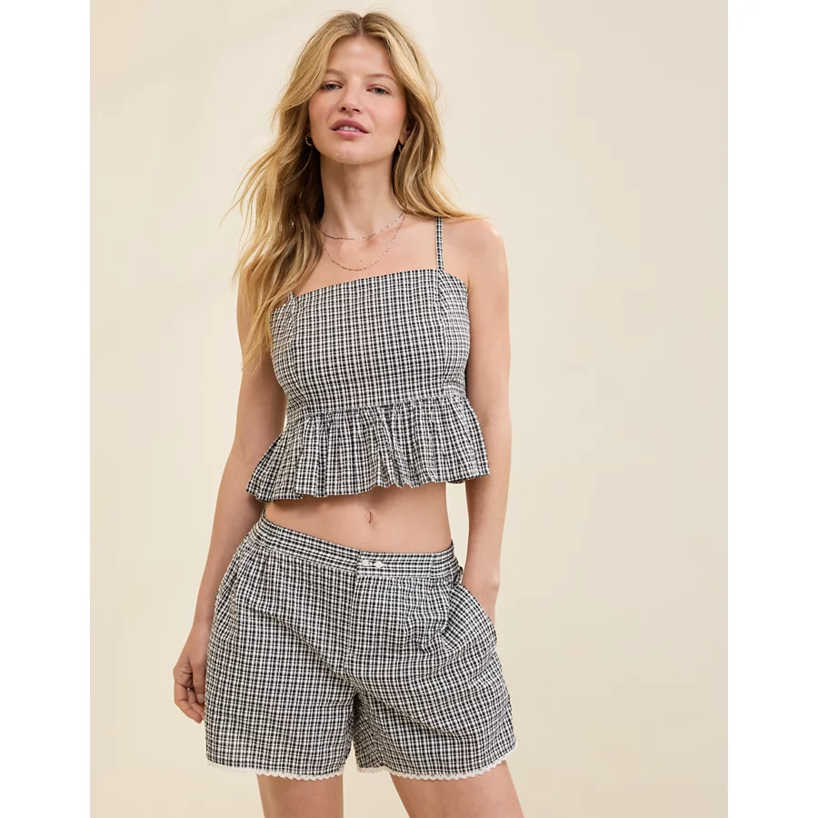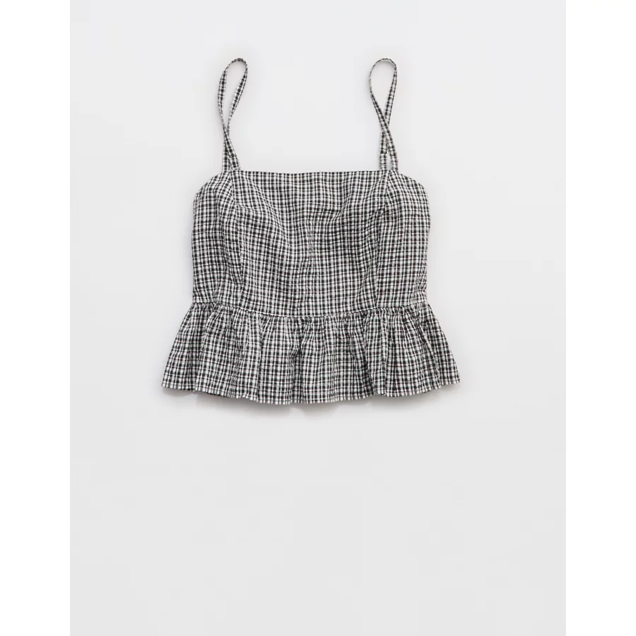 Aerie Seersucker Peplum Tank Top – Smoked Gray