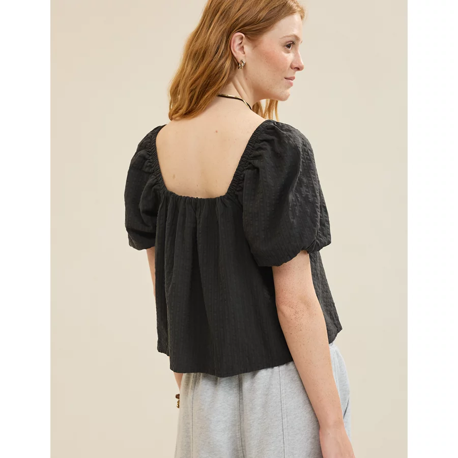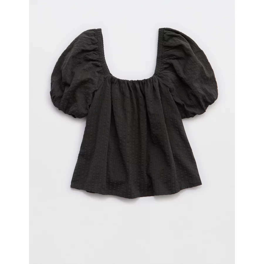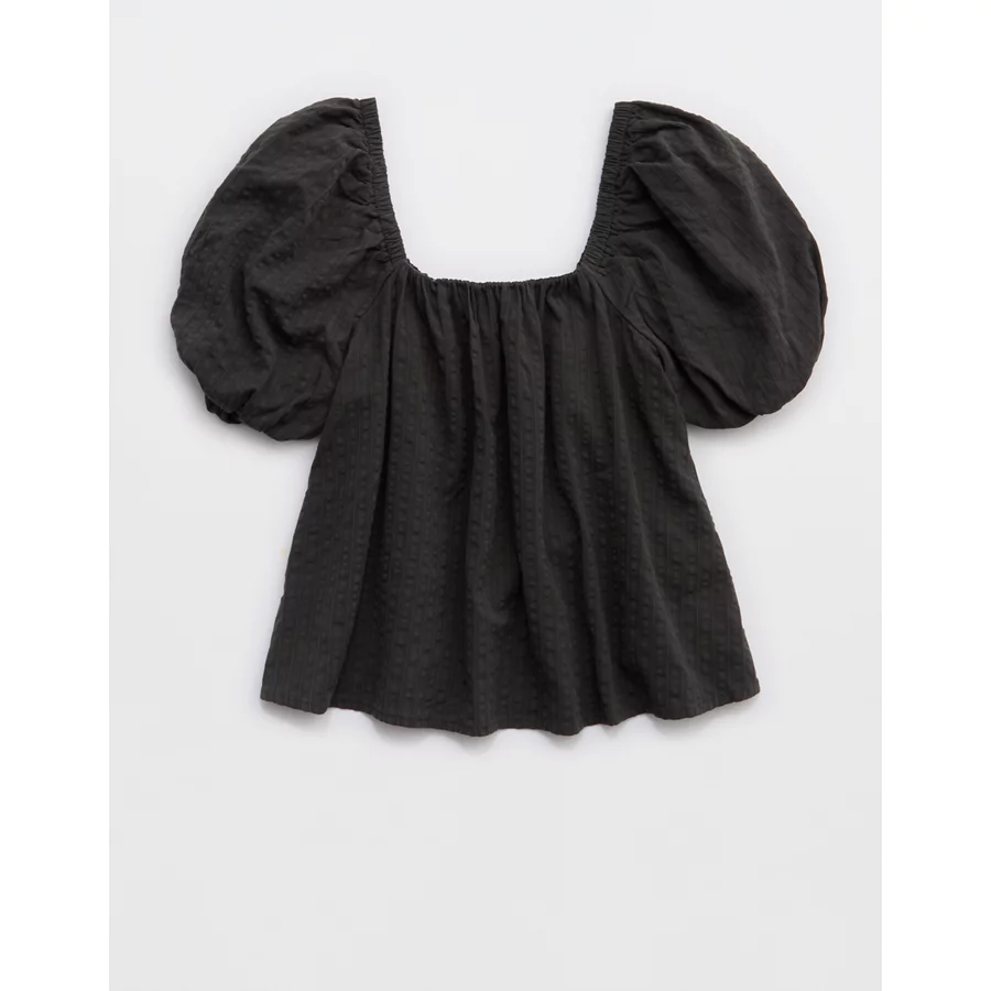 Aerie Seersucker Puff Sleeve Top – Smoked Gray