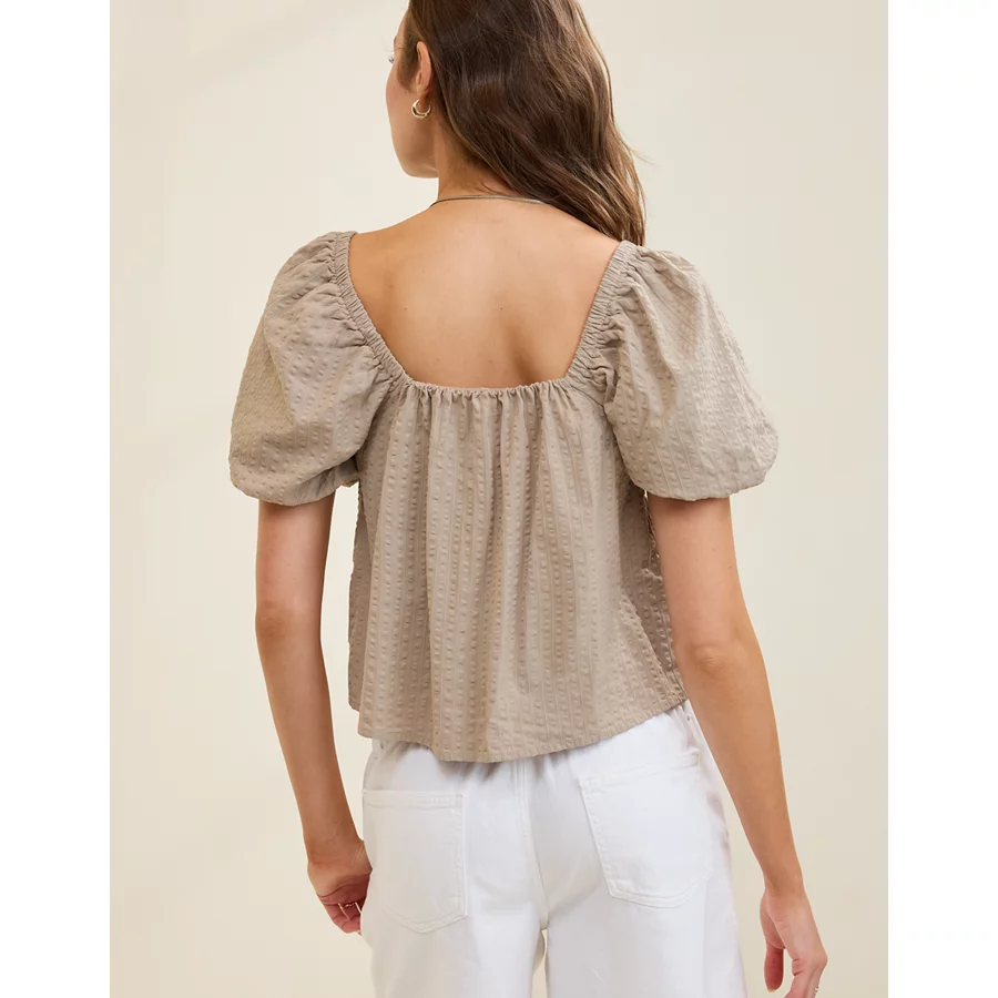Aerie Seersucker Puff Sleeve Top – Stone Harbor