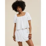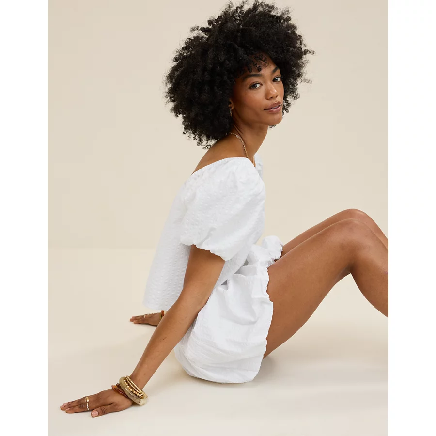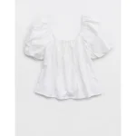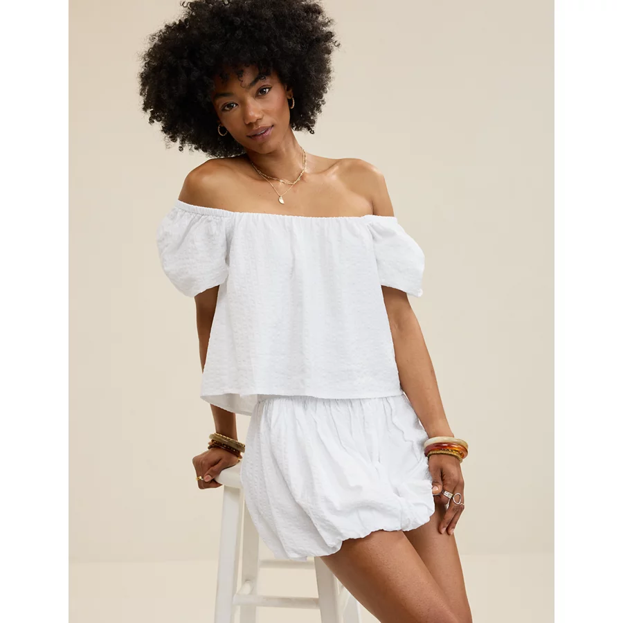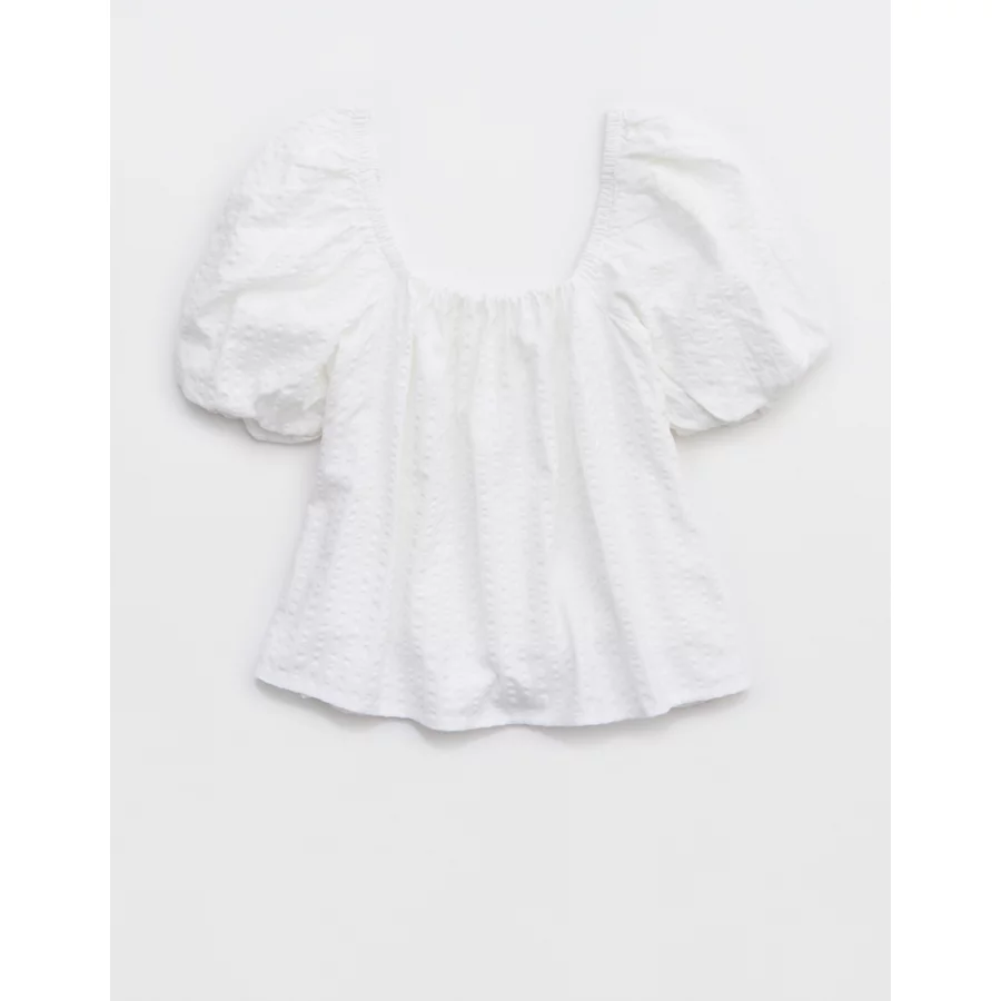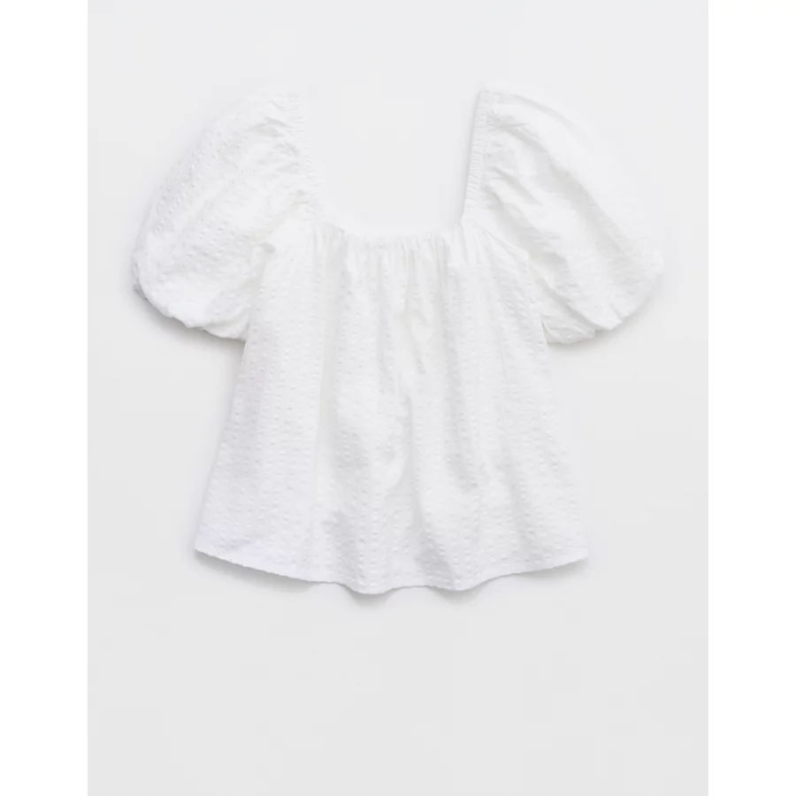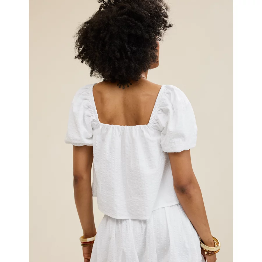 Aerie Seersucker Puff Sleeve Top - Stone Harbor