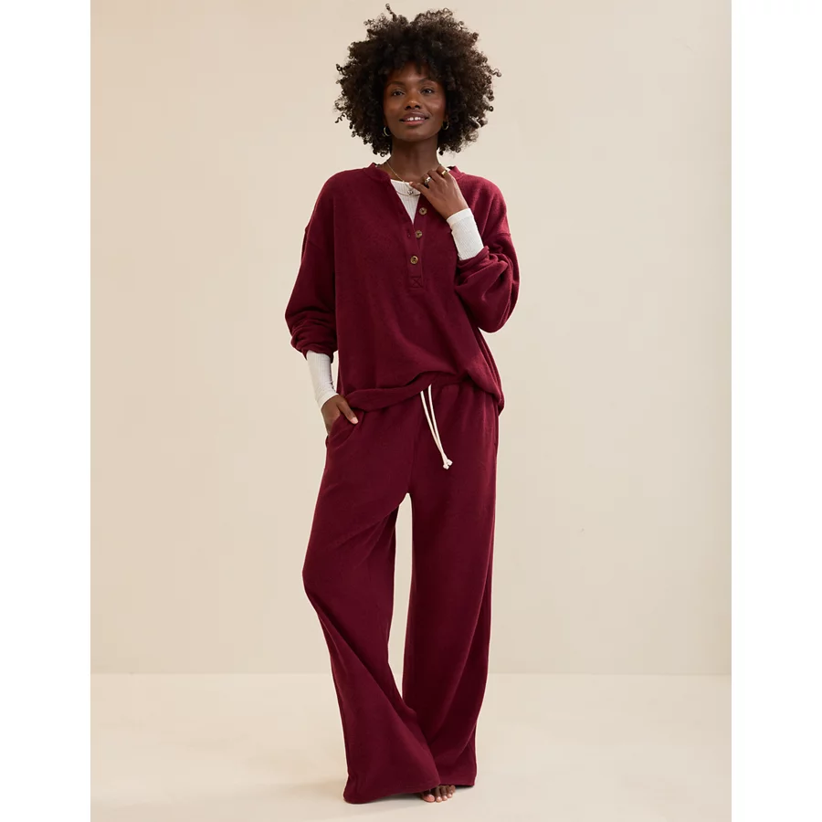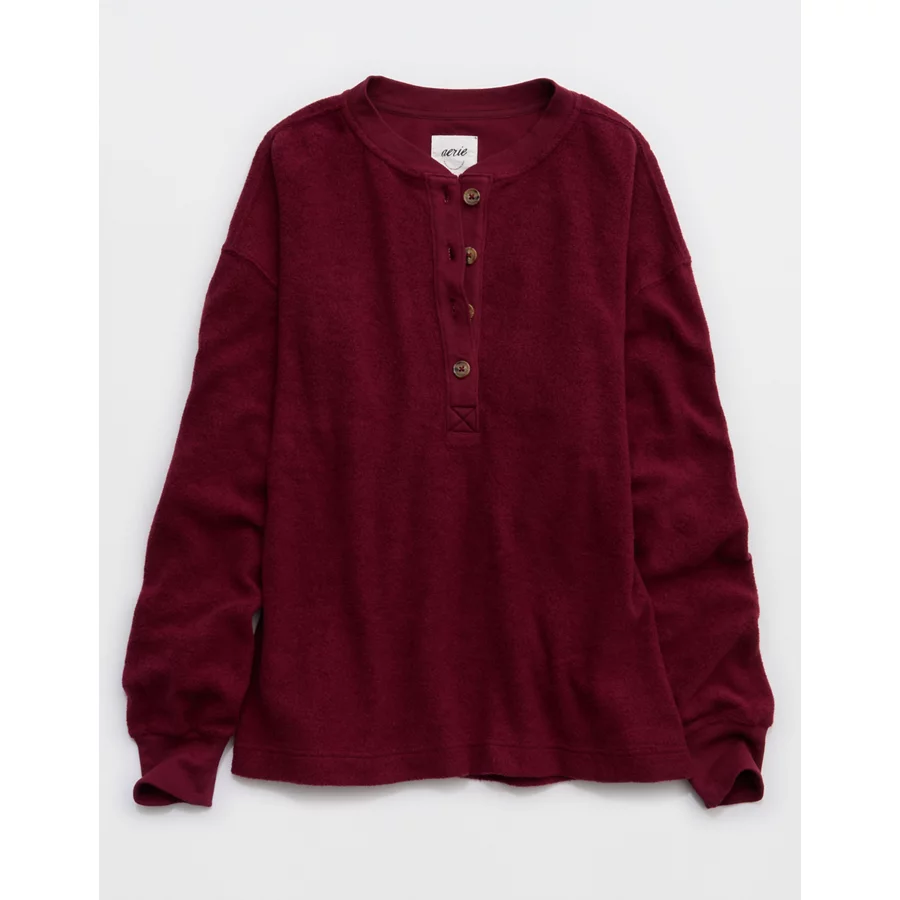 Aerie Sherpa Henley Sweatshirt – Deep Cherry