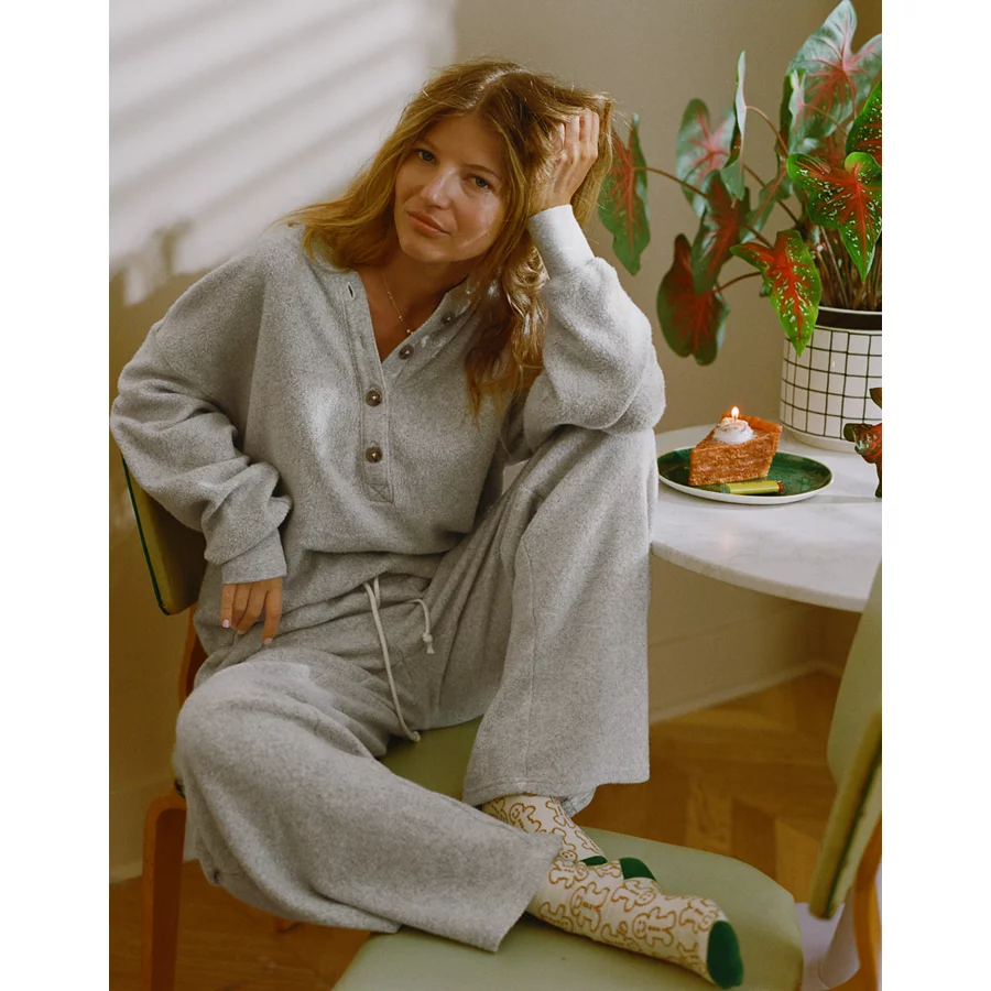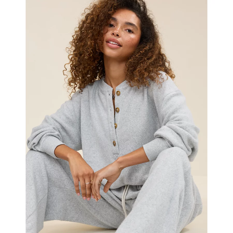 Aerie Sherpa Henley Sweatshirt – Medium Heather Gray