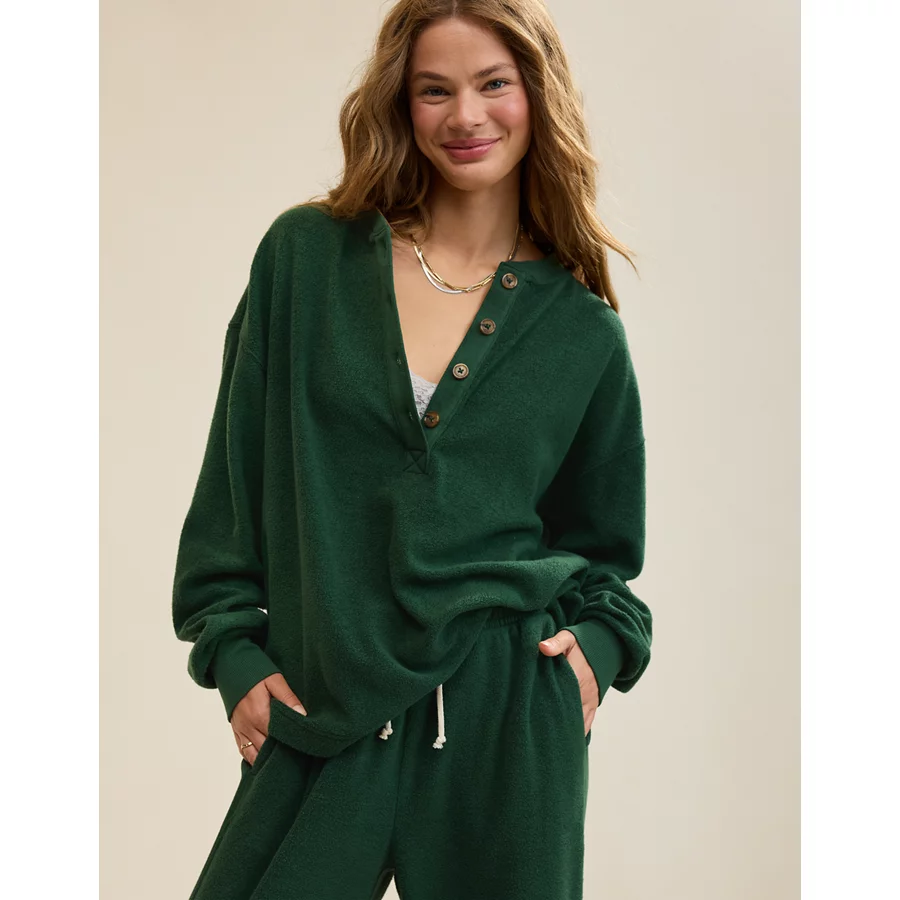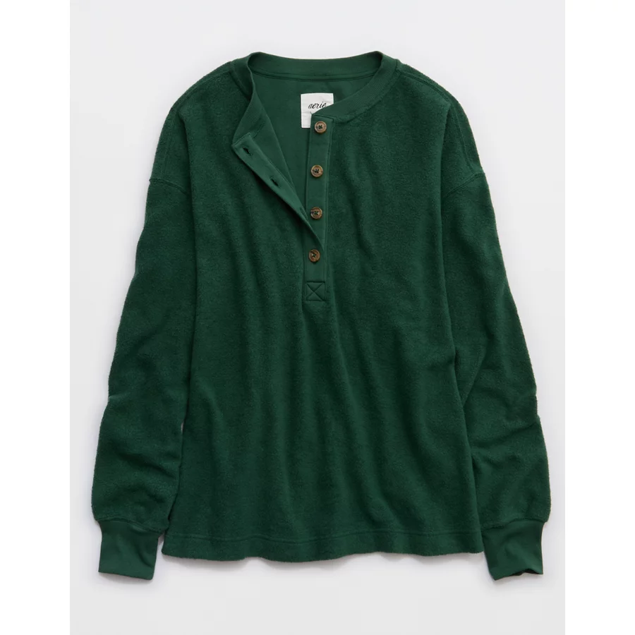 Aerie Sherpa Henley Sweatshirt – Rugged Green