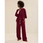 Real Good Everyday yarnRolled necklineRibbed trim on cuffs and hemPointelle deets and split cuffs on the sleevesStripedAccessibility deets: over-the-head access